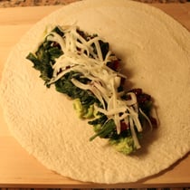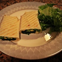 Tortilla ekmeğine önce avokado sürülür sonra sıcak sıcak ıspanak konur, üzerine yaban mersinleri eklenir ve en son rendelenmiş peynir konup ızgarada pişirilir. (Tost makinasına bile koysanız olur)